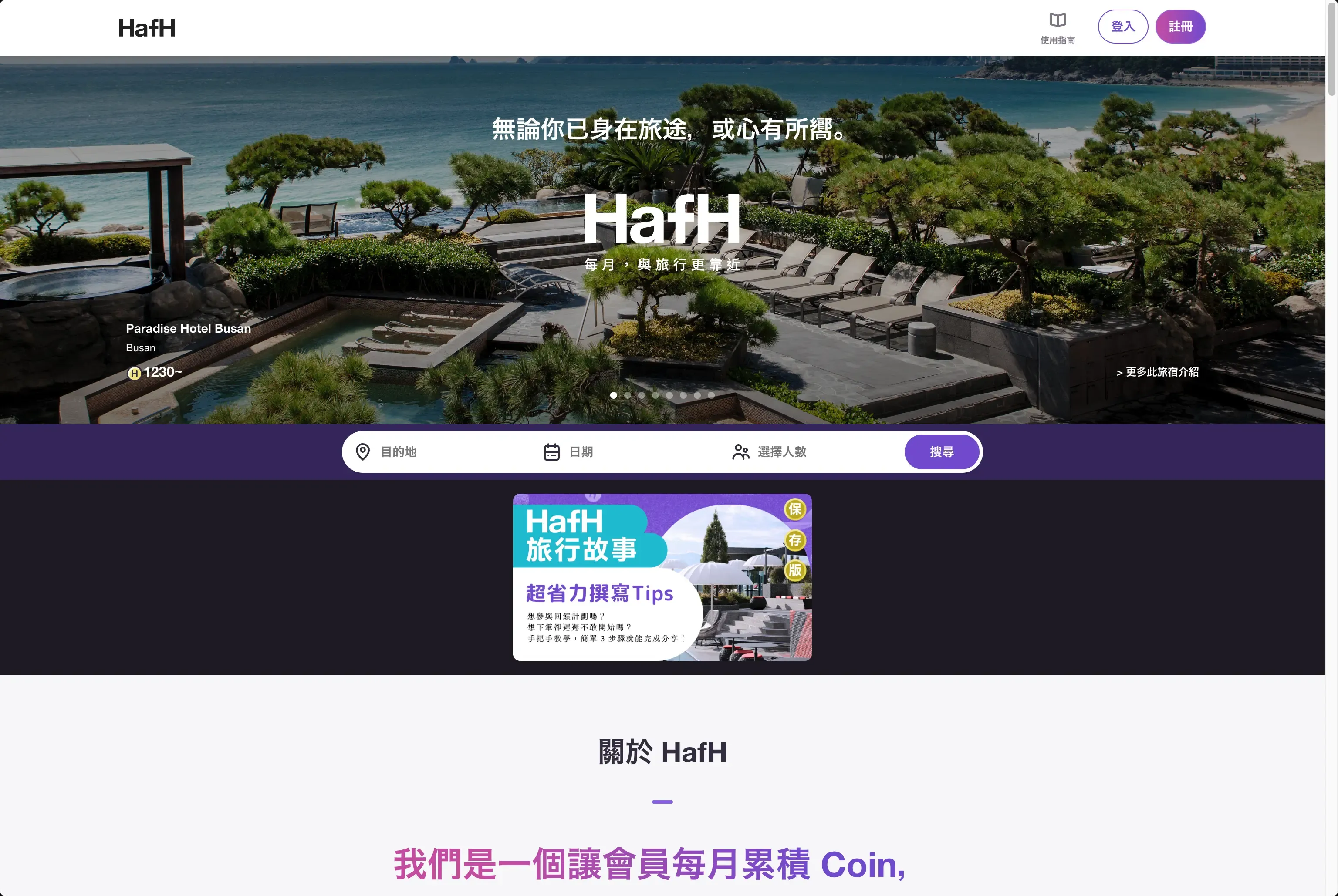 HafH(Home away from Home)是一個源自日本的訂閱制旅遊平台。