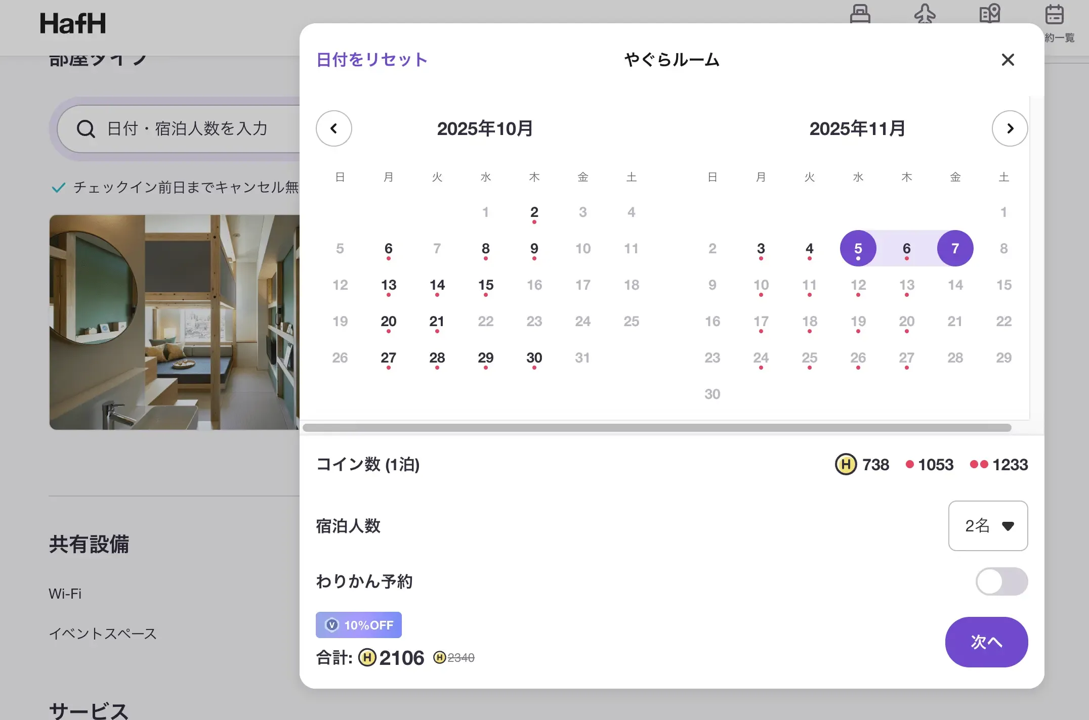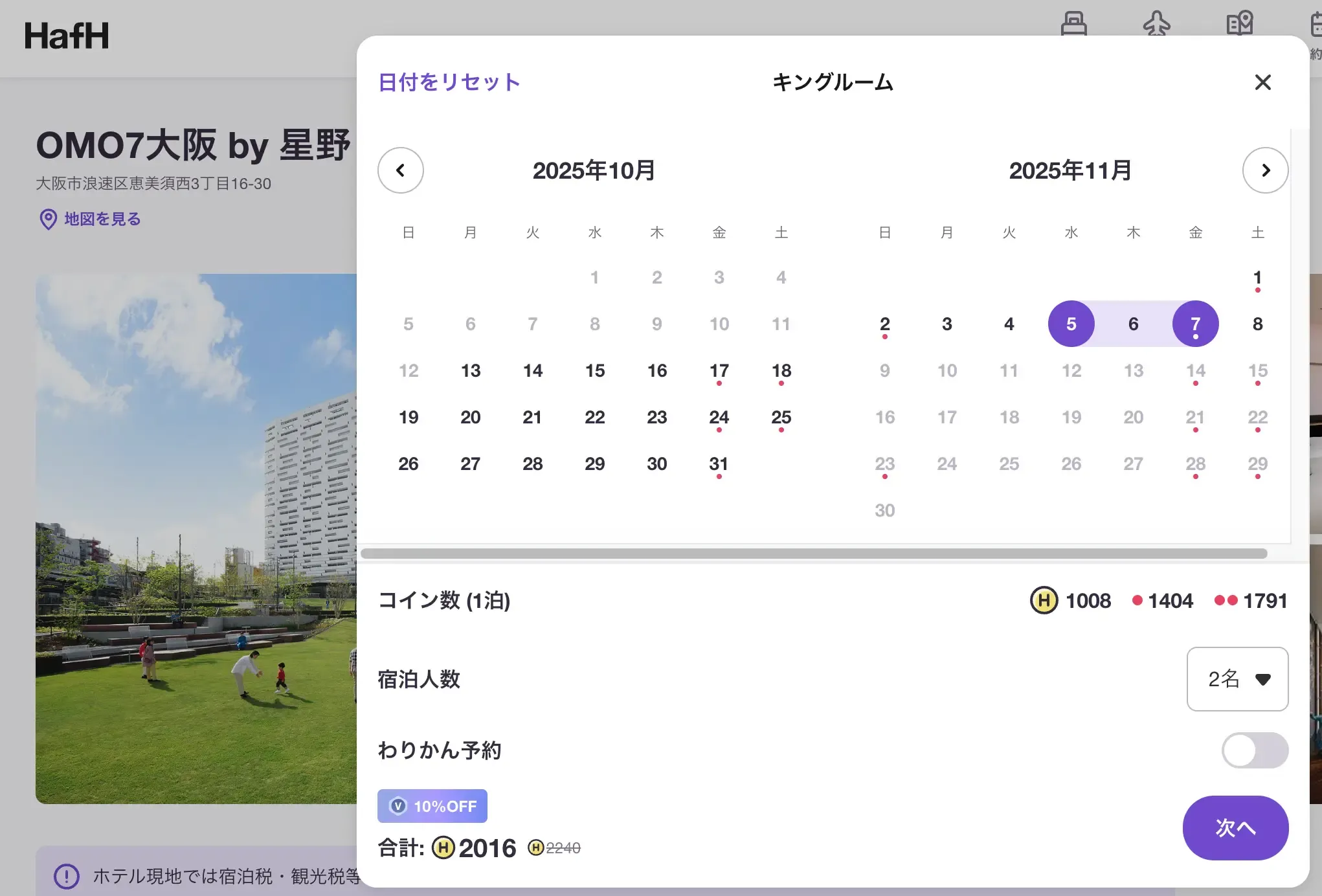 - 看得到訂不到:HafH 合作的飯店數量和房源都比主流訂房平台少,常常會發現,HafH 上顯示「已售罄」,但 Booking.com 或 Agoda 上明明還有空房。
