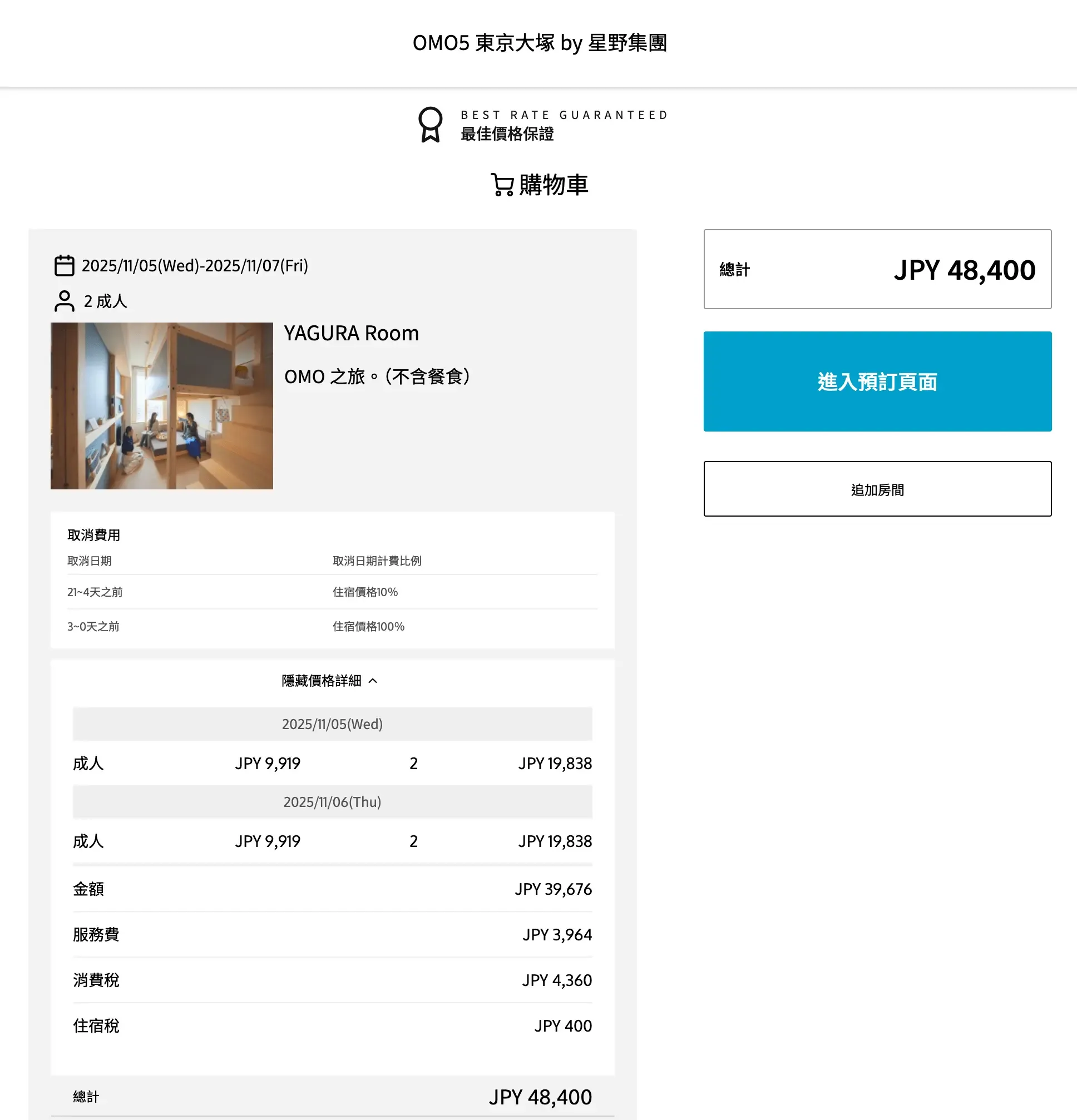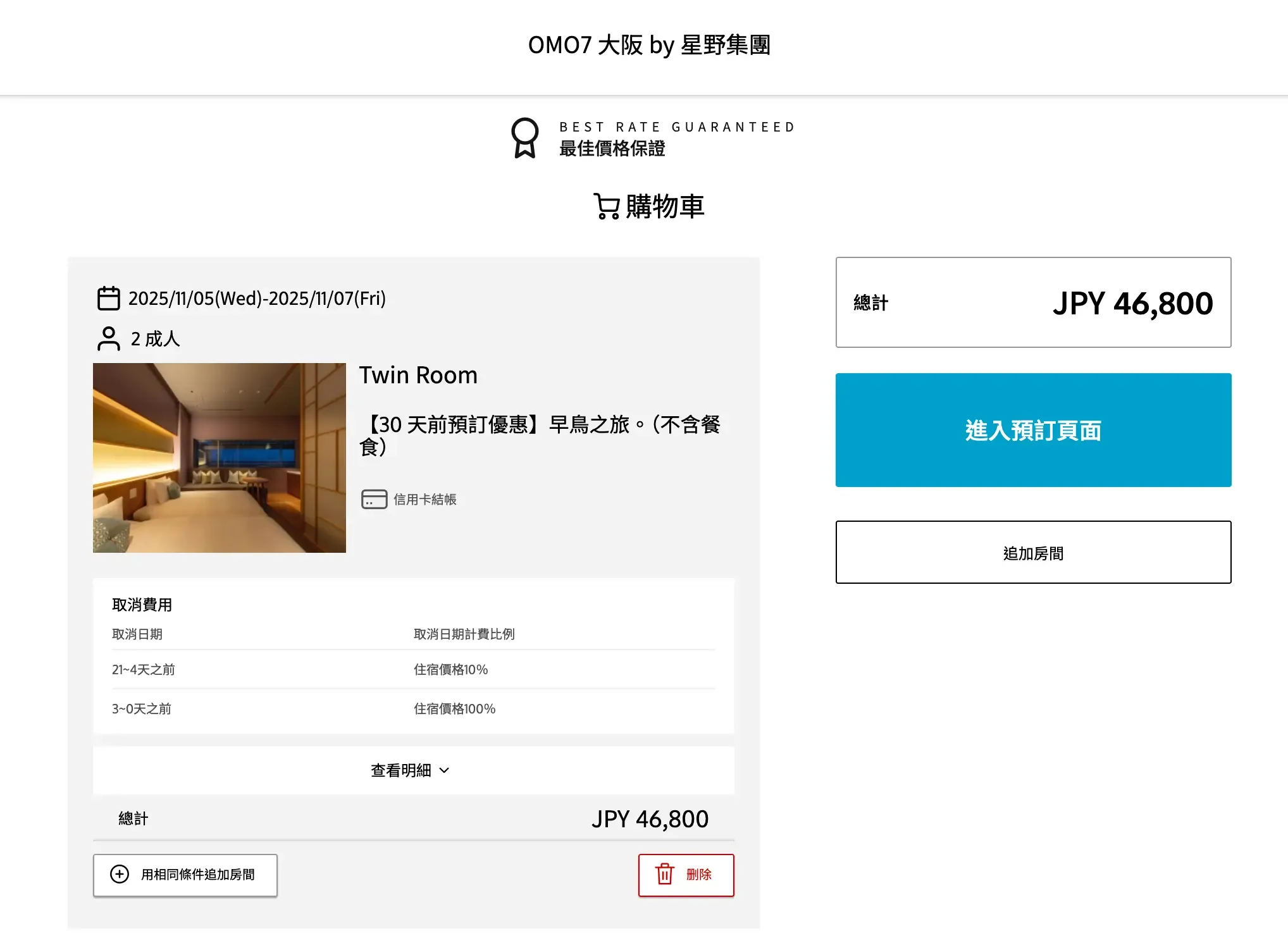 - 入住日期:2025/11/5 - 11/7(兩晚,平日)