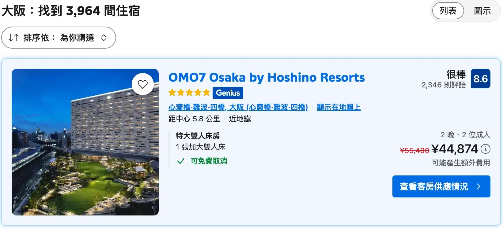 網路上許多推廣文都標榜用 HafH 訂星野集團旗下的 OMO 系列飯店最划算,那我們就直接比價看看。